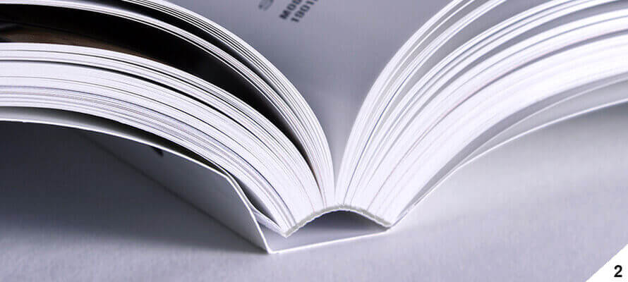 But we should not think that established industrial products are not the result of complex operations and processing. A trip to the bookbindery or to YouTube is enough to discover how many steps it takes to transform a ream of printed paper into a simple paperback volume. The bookbinding industry is now a concentration of efficient technology that has speeded up every step, thanks to the push of digital printing that has made even one-off copies economically worthwhile. Let us start with the most straightforward binding, the simple overlapping of folded sheets, which becomes a staple when the overlapping signatures are held together by a thread. It is worth analysing these types of printed products because there might not be only two staples as usual, or they might be not only folded but also flat, and the thread might be coloured. The staple then has the critical issue of the paper weight limit and the number of pages. Analysing a printed product of this type also makes it possible to assess how the paper behaves when there are so many pages and how much the thickness of the paper influences the so-called “creep”, i.e. the shifting of the pages as you move towards the centre. Keeping this in mind means, among other things, avoiding finding yourself with margins that change page after page or graphics that are dangerously close to the cut.