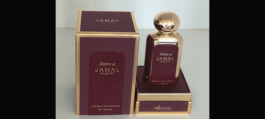 Profumi ipnotici ed emozioni mischiati agli aromi sono sempre state caratteristiche dei prodotti della Cereria Terenzi, che anche questa volta ha creato per la collezione Jamal una profumazione accattivante ed invitante, che si rispecchia nel suo particolare packaging realizzato da Industrialbox: un bordeaux tinto in pasta con linee oro stampate a caldo e a registro non solo sui quattro angoli del coperchio e del fondo, ma anche lungo tutte le cornici esterne del cofanetto stesso, creando così un perimetro oro che lo rende distintivo fin dal primo sguardo.