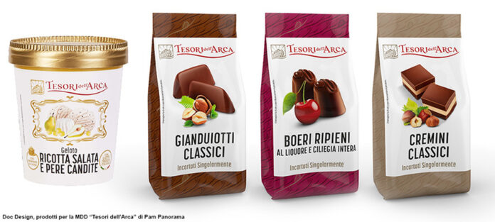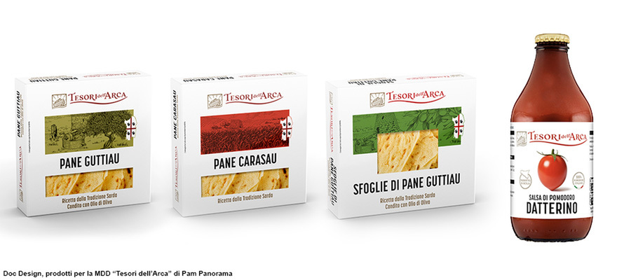 «Un’altra differenza fondamentale rispetto al brand aziendale – prosegue Bignardi – è che l’azienda tendenzialmente è monoprodotto. Se si espande in altri settori acquisisce altri brand, ma è un’offerta focalizzata. Se invece ci spostiamo su un’insegna della GDO si spazia dal detersivo alla pasta, e tutti i prodotti devono essere tutti coerenti per il consumatore. Non ci può essere il prodotto “calimero” e il prodotto “principessa”, tutti devono avere la stessa autorevolezza, e questo vuol dire sviluppare un progetto a 360°, con qualunque tipologia di stampa e materiali. Si presuppone una conoscenza approfondita dei sistemi di stampa da applicare alla casistica più varia: dalla rotocalco alla flessografia, dalla tampografia all’offset. Quando si entra in un punto vendita si possono trovare migliaia di prodotti a marchio, e devono essere ben riconoscibili e coordinati a prescindere da tecniche e materiali. Può sembrare un procedimento troppo analitico, ma consente a tutto il lavoro creativo di funzionare in maniera convincente per il consumatore. È il caso ad esempio di Tesori dell’Arca, la linea premium di PAM che abbiamo rilanciato nel 2023 ed è già arrivata a 480 referenze. L’anno scorso è stata selezionata tra le migliori insegne al PLMA (Private Label Manufacturer Association International Trade Show), la fiera più importante del nostro settore che si svolge ad Amsterdam».