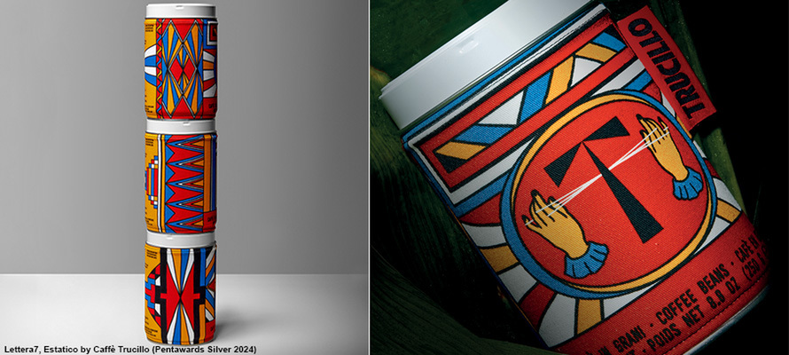 Un approccio che ha valso loro numerosi premi, come il packaging realizzato per Trucillo premiato ai Pentawards 2024. Racconta Biancardi: «Innanzitutto bisogna creare delle fondamenta, quindi partiamo sempre da una brand idea che possa venire declinata sugli elementi di packaging tramite i materiali e il trattamento grafico. Nel caso di Trucillo ci siamo trovati a lavorare con una torrefazione che fa alcuni tra i migliori caffè “di ricerca”: mono-origini incredibili ed enorme conoscenza della materia prima. La richiesta del cliente era di creare un progetto speciale che potesse diventare la loro flagship, intorno al quale costruire il resto del racconto di brand. La mole di ispirazioni da cui partire era enorme, perché i viaggi tra Honduras e Brasile di Antonia Trucillo e del resto della famiglia era già un mondo. Analizzando il prodotto e ascoltando i racconti di Antonia, abbiamo iniziato a girare intorno alla parola “estatico”: cercare di fotografare la sensazione quasi mistica dopo aver provato un caffè che ti spiazza. Abbiamo lavorato a partire dalle decorazioni dei tessuti documentati nei diversi viaggi, che abbiamo astratto e rielaborato con un filtro personale per restituire sulla sleeve in tessuto che riveste la latta in alluminio la sensazione tattile e corposa di quello che si poteva assaporare nel caffè».