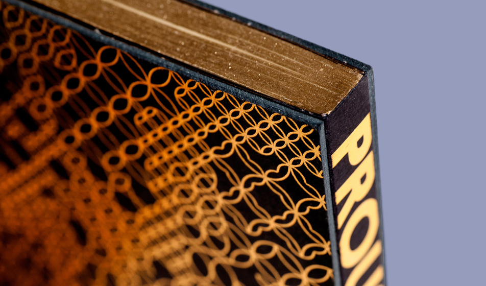 È comunemente definita “bodoniana” una rilegatura che unisce copertina, dorso e retrocopertina tramite i risguardi nella parte interna e la garza sul dorso. Esempi molto eleganti sono la monografia dei 40 anni di Velux ideata da Elena Ziletti e realizzata da Intergrafica Verona o il volume Saloes de Paris dell’editore brasiliano Carambaia che raccoglie 21 saggi di Marcel Proust, con tela nera e taglio colore in oro (20).