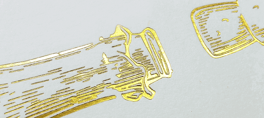 Nel caso del caldo, invece, se occorre una sfumatura non realizzabile con le matrici bisogna ricorrere al cold foil stampato in offset che riproduce le mezze tinte come l’inchiostro offset. Insomma, è sempre meglio consultare sempre il fornitore di cliché. È utile fornire file con i livelli aperti, dove ogni livello indica un’altezza dello sbalzo o un’area che deve essere impressa; può essere utile anche usare differenti colori per i diversi livelli per rendere più chiaro l’effetto che si sta ricercando. I file vettoriali in Illustrator, indipendenti dalla risoluzione, sono l’ideale per rappresentare disegni e offrono la possibilità di essere eventualmente modificati agevolmente. Qualunque materiale che renda l’idea di come si immagina il lavoro finito, può essere utile per chi preparerà il cliché che deve in qualche modo “dedurre” il soggetto dai file forniti. E non dimentichiamo un campione del supporto. Creare un cliché non lo si fa “schiacciando un bottone”, ma è una vera operazione artistica.