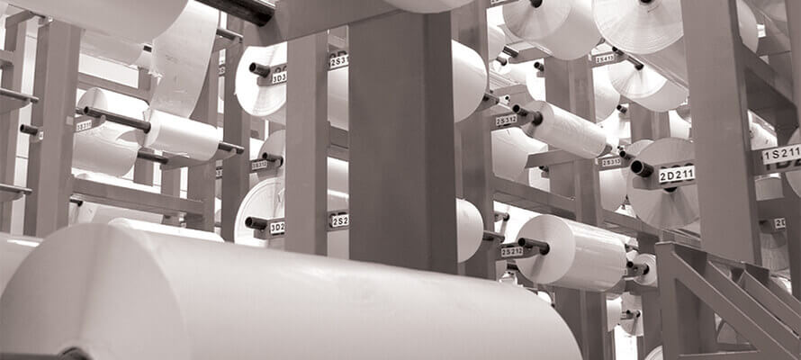 Contrariamente a quanto generalmente si pensa, nelle linee produttive l’adesivo viene spalmato prima sul liner con un sistema di racle, e solo a questo punto viene accoppiato al film polimerico e sottoposto al curing.