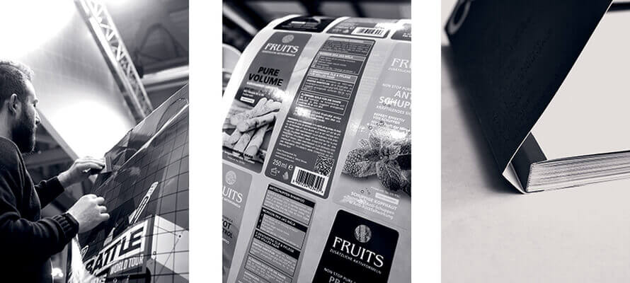 A questo punto abbiamo capito che il mondo degli adesivi è estremamente complesso e vasto. Ci sono almeno tre tipi diversi di classificazione: in base ai componenti, alla composizione, al tipo di solidificazione. Nel settore della stampa di piccolo e grande formato, della legatoria e del packaging sono diversi i momenti e le occasioni in cui vengono usati adesivi, in purezza oppure già accoppiati ad altri materiali. Vediamo quali sono le più usate in ogni settore e quali caratteristiche hanno.