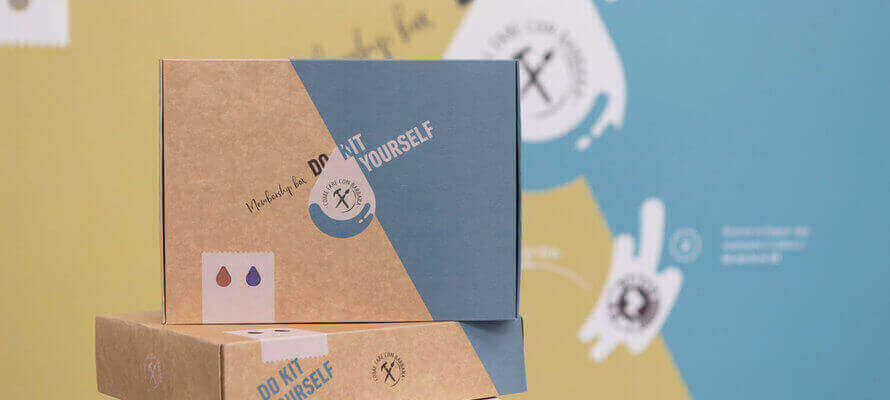 Il team di HUD ha utilizzato i servizi Pack.ly per la realizzazione dei packaging e degli accessori che compongono la subscription box “Do (k)it yourself”. L’applicazione consente infatti di creare scatole con dimensioni e grafica personalizzate, direttamente online e in pochi semplici click. Dopo aver generato e scaricato i tracciati fustella su misura, il team si è dedicato alla personalizzazione grafica dei componenti. Per valorizzare il progetto, le subscription box sono state realizzate in cartoncino Kraft e stampate a 5 colori. Sfruttando le potenzialità della stampa digitale, il nome e i colori presenti sul divisorio interno sono stati stampati con dati variabili raggiungendo livelli di personalizzazione one-to-one. Pack.ly consente infatti di stampare anche una sola scatola personalizzata.