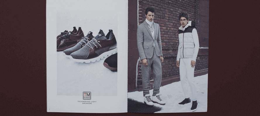 Le copertine che evocano profili metropolitani sono stampate su carta KeayKolour Original da 300 gsm. La collezione della linea “Couture”, apice dell’offerta sartoriale di Ermenegildo Zegna, ha scelto il verde nella tonalità Holly, mentre il catalogo del marchio trendy Z Zegna si veste di rosso Burgundy. Gli interni sono stampati su Inuit Tactile nel colore Brilliant White in grammatura da 160.