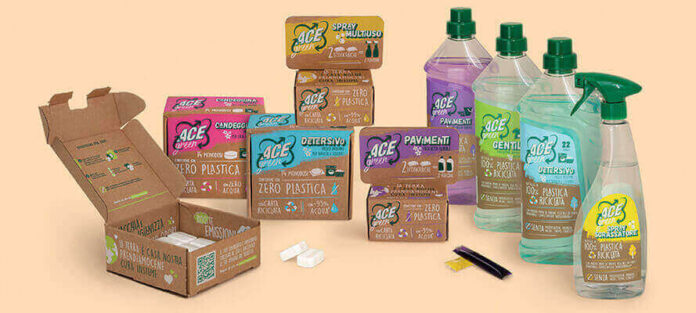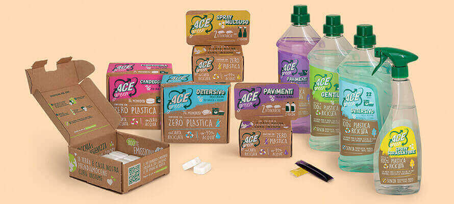 It is a gradual but unstoppable revolution that goes hand in hand with the one taking place in cosmetics, with which it shares communication codes and has an aesthetic dialogue. It allows companies to optimise the logistics chain by having to move only the concentrated active ingredients and not the weight of water, it is advantageous for consumers in terms of convenience, and last but not least, it is good for the environment. Eco-cleaning is a scenario that includes different players. There are the big brands that have always been present in large-scale distribution – such as ACE, a giant that recently launched its own green line with the creativity of the DLVBBDO agency. Then there are brands built over time around conscious consumption experiences – such as Officina Naturae and Bioermi di Allegro Natura. And there are also digital-first products created directly with subscription boxes and direct-to-consumer, such as R5. Each of these contexts brings design challenges and different ways of communicating with consumers that impact packaging choices. According to the latest Istituto Italiano Imballaggio (Italian Institute of Packaging) analysis of the household cleaning sector, plastic packaging – both rigid and flexible – will continue to dominate the landscape in 2020, providing 94% of the packaging for household cleaning products. However, this also includes biodegradable plastic packaging, which is growing steadily and is currently used mainly in concentrated refills for detergents and accounts for 1.5% of the total. The remaining 6% consists of 4% paper and cardboard boxes – used primarily for powder products and tabs – 1.5% metal containers, and the remaining 0.3% paper-based rigid laminated containers. But what are the criteria to be taken into account when developing these new formats?