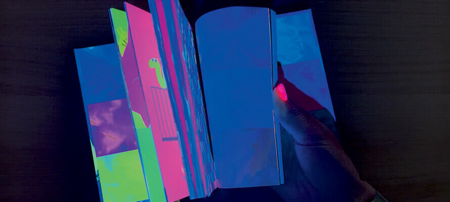 Un altro aspetto di unicità degli albi illustrati – prosegue Aldegheri – è la fase di confezione e rilegatura: un libro sottile da 32 pagine ha specificità molto diverse da un tascabile, e le nostre macchine sono modificate appositamente per i formati e la paginazione degli albi. Ci concentriamo molto anche sull’aspetto di ricerca e sviluppo, come ad esempio le tecnologie AZ Neon e Ghost che abbiamo presentato negli ultimi anni. Entrambe lavorano sull’impressione di sorpresa e di meraviglia di una pagina che nasconde qualcosa di più sotto la propria superficie. Entrambe le tecniche di stampa sono compatibili con una grande varietà di carte, dalla classica uso mano fino alla carta realizzata con sottoprodotti di lavorazioni agro-industriali o persino la Petra con l’80% di carbonato di calcio. AZ Neon non è solo un inchiostro fluo, ma ha delle caratteristiche peculiari di rifrazione che diventano particolarmente suggestive con la luce UV. Altrettanto per la stampa Ghost, una tecnologia di stampa che “nasconde” all’interno della grana della carta delle immagini visibili con una fonte di luce, come ad esempio la torcia di un telefono. Quello che prima aveva bisogno di accessori particolari come le lenti a filtro rosso, con la stampa Ghost si può fare in maniera molto immediata, “nascondendo” un ulteriore livello di lettura nelle pagine di una storia. Nelle mani degli autori sono veicoli per infinite storie, e uno strumento di grande suggestione e magia per il lettore bambino».