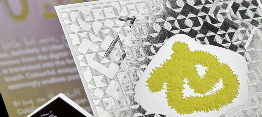 Digital embossing, or UV or raised digital varnishing, is another popular option that adds texture and a three-dimensional effect by applying a transparent polymer to specific areas. The result is a raised effect that can be felt and seen, providing an enhanced tactile and visual experience. Digital embossing allows for precise application, meaning it can highlight specific design elements such as logos, text, or graphical details, adding a layer of sophistication and luxury. Unlike traditional embossing, it does not require the creation of dies or molds, making it more cost-effective and accessible for short runs and custom designs. This flexibility and efficiency make it a favored choice for adding a premium touch. The newer generations of embellishment equipment can emboss even the finest lines to add texture to design elements and text.