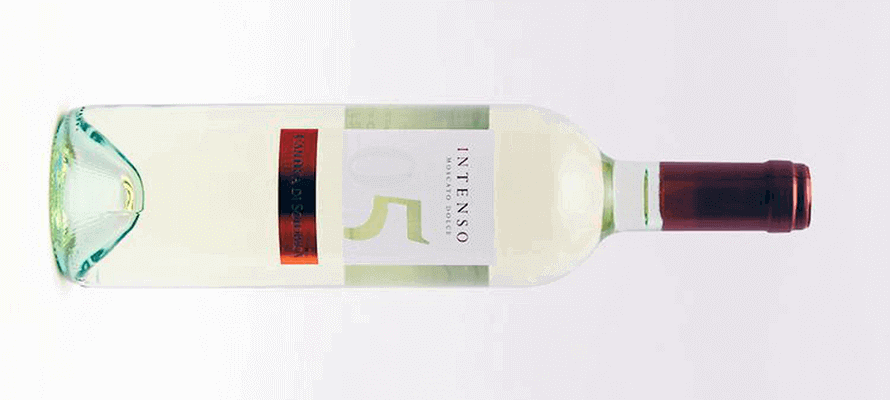 Etichetta d’Oro Beneventano Igt Moscato Filtrato Dolce “Intenso 05”. Un design moderno per un vino giovane ma dal sapore intenso. Design minimal giocato prevalentemente sulle trasparenze impiegando una fustella per realizzare il numero 5. Ciò permette di ottenere trasparenza in contrasto al materiale dell’etichetta, creando un’originale finestra sul contenuto della bottiglia.