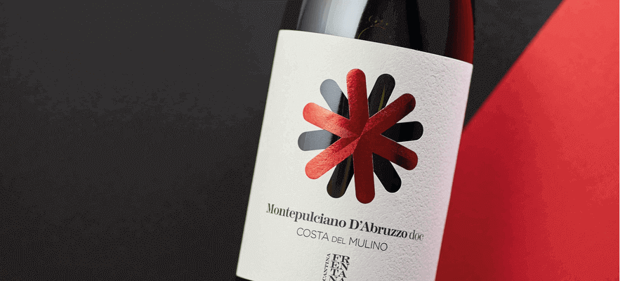 L’origine del nome Costa del Mulino è da rintracciare nell’esistenza di mulini ad acqua nel tratto della costa dei trabocchi, area dove insistono diversi vigneti della cantina. Per il nuovo corso, Dispenser reinterpreta la grafica della ruota del mulino, rendendola l’elemento centrale dell’etichetta, in combinazione con un gioco di fustelle e lamine metalliche dalle tinte forti. Ciascuna etichetta viene completata dalla sua capsula in polilaminato anch’essa impreziosita con un gioco di lamine di diverso gradiente cromatico sempre coordinata con la lamina utilizzata nell’etichetta. Il risultato garantisce un deciso impatto a scaffale coerentemente con la strategia di riposizionamento.