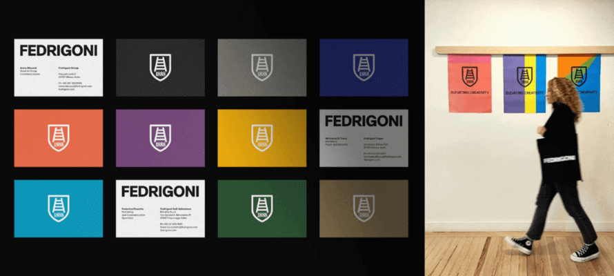 Vince l’essenzialità. L’identità principale è monocromatica: bianco o nero, in base allo sfondo e all’utilizzo, cui si affianca una suite di grigi. Ciò che è Paper è caratterizzato dal nero, Self-Adhesives dal bianco, Corporate dal grigio. Sofisticata e moderna, questa scelta mette in risalto il mondo del colore in cui vive Fedrigoni e consente ai prodotti e ai marchi – omogenei nello stile grafico, ma denotati ciascuno da una tonalità unica, nel nome o nello sfondo – e alle immagini di rimanere al centro dell'attenzione. Quanto al wordmark Fedrigoni, è stato progettato per essere il più adattabile possibile alle sue molteplici applicazioni su prodotti, cataloghi, biglietti da visita, oggetti di merchandising, insegne su edifici, negozi o camion.