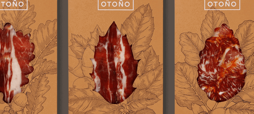 Otoño, autunno in spagnolo, è un nome che richiama una stagione ma anche le ghiande pro-dotte dagli alberi, fondamentali per la produzione del prosciutto Ibérico. Per enfatizzare l’importanza delle origini di questo tradizionale ed esclusivo prodotto Spagnolo, Tres Tipos Gráficos ha creato un logo d’impatto in cui il ritmo generato dall’alternanza delle O è interrotto solo dalla presenza del più caratteristico segno tipografico spagnolo, la Ñ: questo particolare accento è stato ripreso dallo storico carattere Spagnolo “Ibarra Real” e il font san serif creato attorno ad esso ricorda le tradizionali insegne in ferro realizzate per gli allevamenti. L’apertura frontale del packaging, fustellata a forma di foglia, permette di integrare il contenuto con le illustrazioni presenti sulla confezione, che rappresentano le diverse tipologie di alberi da ghianda e creano un forte legame con il nome del brand