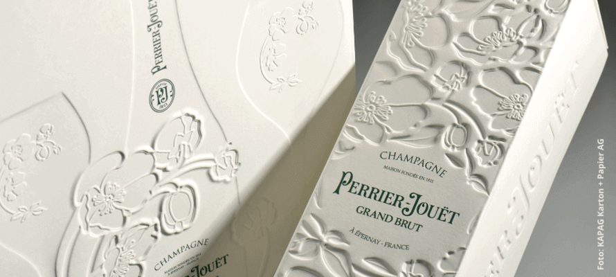 Questa goffratura unica è possibile grazie alla carta FibreForm™ di BillerudKorsnäs che ha un’elevata elasticità e resistenza allo strappo. KAPAG Karton + Papier AG accoppia FibreForm™ per creare un cartone multistrato che può essere utilizzato per imballaggi primari o secondari. Sono necessarie conoscenze tecniche specializzate per accoppiare questa carta altamente flessibile con un cartone in grado di gestire gli impegnativi processi di stampa offset e di trasformazione.