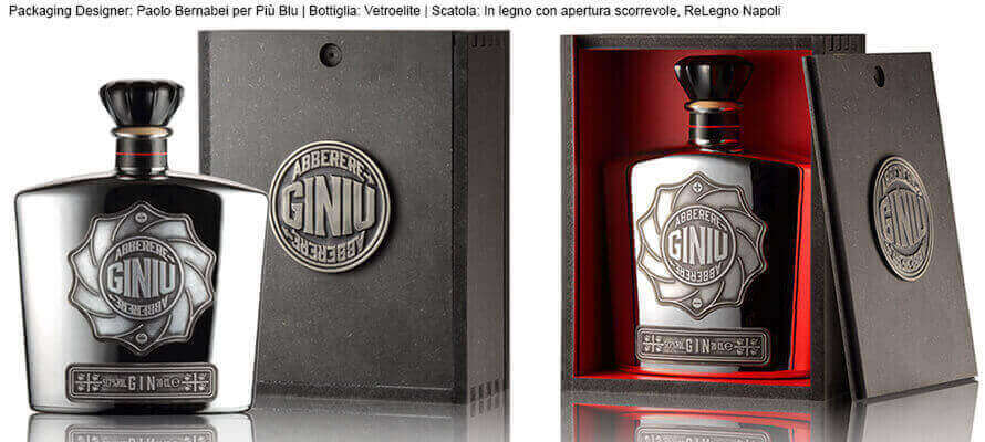 Elio Carta della Distilleria Silvio Carta è ancora più convinto del ruolo del packaging secondario nel creare l’effetto sorpresa: «Aprire la confezione in legno personalizzata con la stampa a fuoco che riprende il design dell’etichetta di Giniu è davvero un’esperienza di grande soddisfazione. Giniu 517, invece, viene commercializzato all’interno di una preziosa box nera di legno, con il logo inciso sul metallo e incastonato sul tappo. La scatola ha l’interno verniciato di rosso per far risaltare ancora di più la lucentezza del platino».