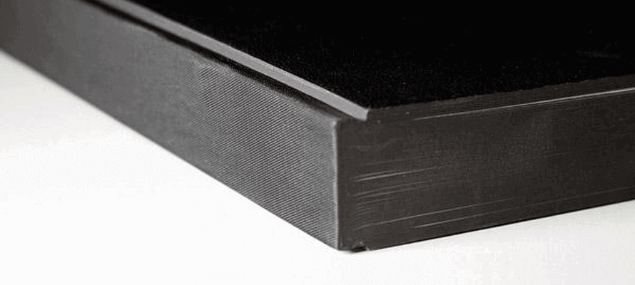 Il prodotto presenta alcuni dettagli esecutivi davvero pregevoli. Copertina, nobilitazione e confezione sono giocati sul colore nero, in alternanza lucido opaca. Si tratta infatti di una legatura alla Bodoniana, con rivestimento delle plance in similpelle nera, in versione satinata micro-goffrata, montate su un dorso in Setalux di Manifattura del Seveso, notoriamente lucida per effetto del materiale di composizione che è una viscosa accoppiata a carta. Il taglio del libro, che presenta gli angoli in controdorso smussati, sia in testa che al piede, è stato colorato a spruzzo in acrilico nero, necessariamente opaco, su cui è stata applicata una lamina a caldo in nero lucido con la scritta “notes” in un carattere graziato, quindi particolarmente complesso nella riproduzione dei dettagli. Sottolineiamo quest’ultima lavorazione che richiede una applicazione a caldo della lamina sul taglio del libro per cui è necessaria una speciale tecnologia applicativa, ma soprattutto una grande attenzione esecutiva per garantire un ancoraggio del film adeguato, senza che ciò determini un’adesione fra le pagine.