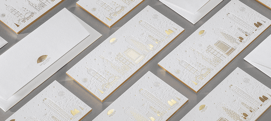 Un cartoncino di alta qualità, un design elegante e preziose lavorazioni sono stati gli ingredienti per realizzare queste greetings card per il Mandarin Oriental Hotel nel cartoncino ad alto spessore di Favini: Sumo 3mm nella sua variante bianca.
