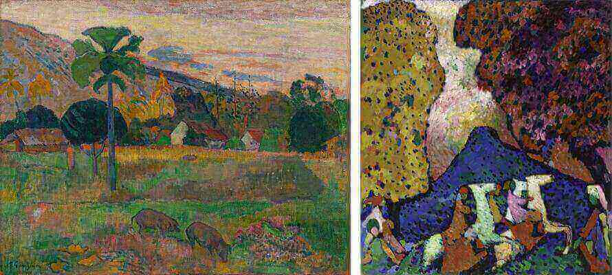 Thannhauser aveva collezionato varie opere di Edgar Degas, delle quali in mostra sono esposte tre splendide sculture in bronzo realizzate tra la fine dell’Ottocento e il primo decennio del Novecento: Ballerina che incede con le braccia alzate, Danza spagnola e Donna seduta che si asciuga il fianco sinistro. Dei primi anni del Novecento è un altro bellissimo bronzo: Donna con granchio di Aristide Maillol. Nel 1928 la galleria Thannhauser di Berlino aveva organizzato una grande retrospettiva di Paul Gauguin: a Milano arriva un suo meraviglioso paesaggio Haere Mai del 1891, dipinto a Tahiti, che riflette l’idealizzazione romantica di un paradiso puro che sedusse molti europei al finire dell’Ottocento.