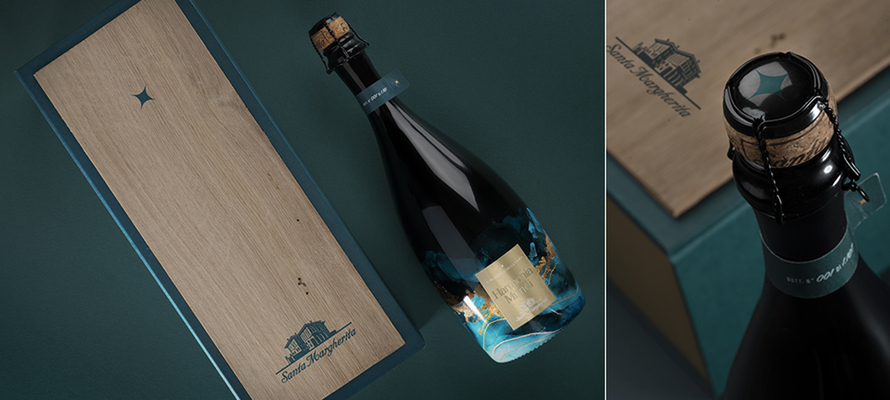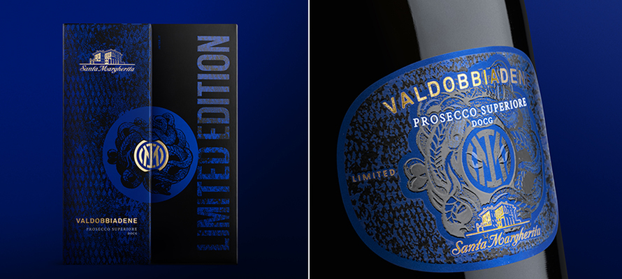 La limited edition del Valdobbiadene Prosecco Superiore DOCG Brut, creata in collaborazione tra Inter e Santa Margherita, brand di Herita Marzotto Wine Estates, rappresenta un connubio perfetto tra il prestigio globale del Club e la tradizione vinicola italiana. La sfida di mantenere l’identità di entrambe le realtà, nel rispetto della tradizione vinicola e dell’iconicità della maglia nerazzurra, ha portato alla creazione di un design distintivo che contamina l’intera etichetta e l’astuccio. La scelta dell’oro opaco Luxor 425 e della vernice serigrafica ruvida si combinano con una serigrafia luminescente che, se portata al buio, rivela sulla bottiglia il simbolo iconico del Biscione e gli occhi del serpente, questi ultimi visibili solo in assenza di luce. La carta scelta è certificata FSC, mentre coerenza e continuità è data dal secondary packaging impreziosito con l’oro opaco Luxor 425 e una vernice serigrafica lucida ad alto spessore.