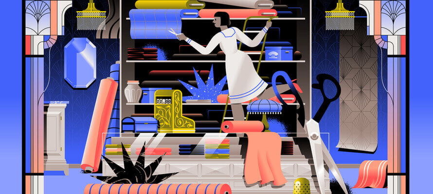 L’illustrazione del mese di gennaio è dedicata agli anni Venti, con l’entrata delle donne (le cosiddette Flapper) nel mondo del lavoro, che definiscono un nuovo stile fatto di capelli corti e vestiti colorati; febbraio invece rappresenta gli anni dell’Art Déco, con un decoratore intento a scegliere la tappezzeria di un hotel, il tutto caratterizzato da una armoniosa sintesi di forme classiche e più moderne geometrie.