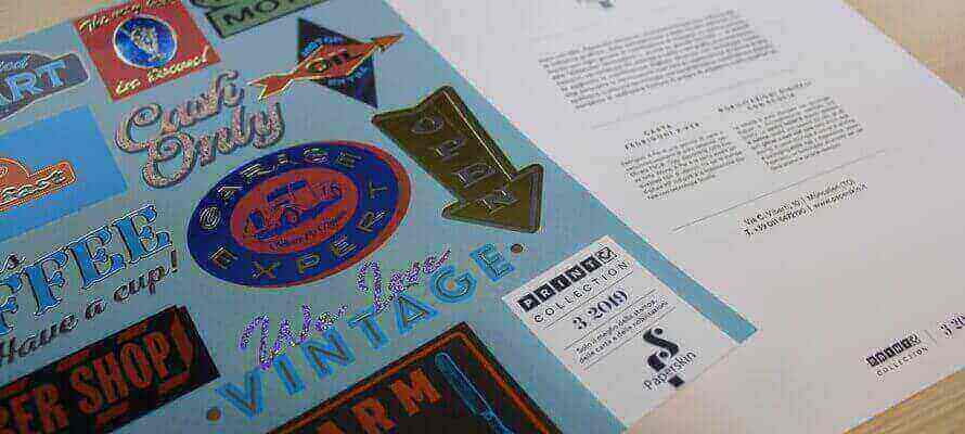Ogni inserto ha un soggetto scelto, stampato e nobilitato da chi chiede di realizzarlo, sul cui retro sono riportate tutte le informazioni tecniche su come è fatto.