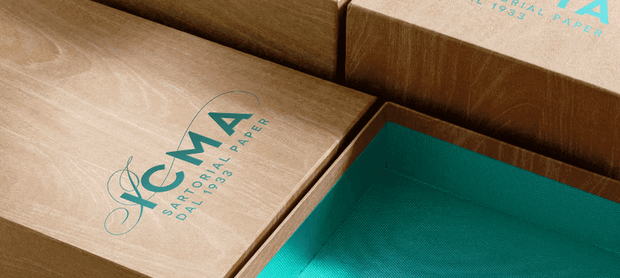 Icma (Industria Carte Metallizzate e Affini) non aveva sostanzialmente mai cambiato la sua firma dal 1933, anno in cui venne fondata da Matilde Carcano, imprenditrice che intuì il potenziale del packaging e lo assecondò con una produzione diversificata di carte. L'originale era in corsivo semplice, con un tratto ovale che circondava il nome. Dallo scorso anno si era aggiunto il payoff sartorial paper, concetto che l'azienda declina in tre ambiti: sperimentazione creativa per stare al passo con i mercati e catturare i segnali di nuove mode ed esigenze estetiche del mondo del lusso, il "su misura" che rappresenta la cifra distintiva di Icma e il servizio ottimizzato sulle esigenze dei clienti.
