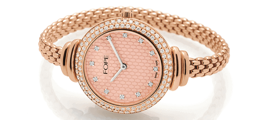 La Fope di Vicenza, fondata nel 1929 e condotta oggi dalla terza generazione della famiglia Cazzola (Umberto presidente e la sorella Ines vicepresidente mentre Giulia Cazzola, quarta generazione, è direttore marketing) da piccolo laboratorio artigianale è diventata protagonista nel mercato della gioielleria d'alta gamma (completata recentemente anche con l'inserimento dell'orologeria) con oltre 20 milioni di euro di ricavi, l’80% dei quali realizzati all’estero. Fatta esclusione di Cina e India, Fope è presente in quasi tutti i Paesi, dall’America al Sud Est asiatico agli Emirati, e ovviamente l’Europa, con in testa Germania e Inghilterra, con circa 800 gioiellerie multibrand. Si tratta di una piccola-media impresa industriale che ha, dal design alla realizzazione dei prototipi delle nuove collezioni fino alla produzione e alla comunicazione, il suo punto di forza nel realizzare tutto il processo a Vicenza, con una quarantina di dipendenti. “Fope — spiega Giulia Cazzola – oggi è un marchio internazionale di gioielleria. La sua attività è iniziata quando il mio bisnonno Umberto Cazzola ha fondato nel 1929 il primo laboratorio orafo. A quel tempo aveva già un approccio innovatore — spesso pionieristico — che è riuscito a trasmettere al figlio Odino. Negli anni Fope si è specializzata nella manifattura di cinturini per orologi in oro e in altri metalli ed è diventata fornitore dei più grossi marchi svizzeri. Con l’ingresso in azienda, la terza generazione (ossia mio padre e sua sorella), ha messo a frutto il bagaglio di conoscenze maturate e l’ha investito nella realizzazione di una propria linea di gioielli in oro. È nata così la maglia Novecento che, attraverso la contaminazione di più design, è diventata la firma di Fope sia a livello nazionale sia internazionale”.