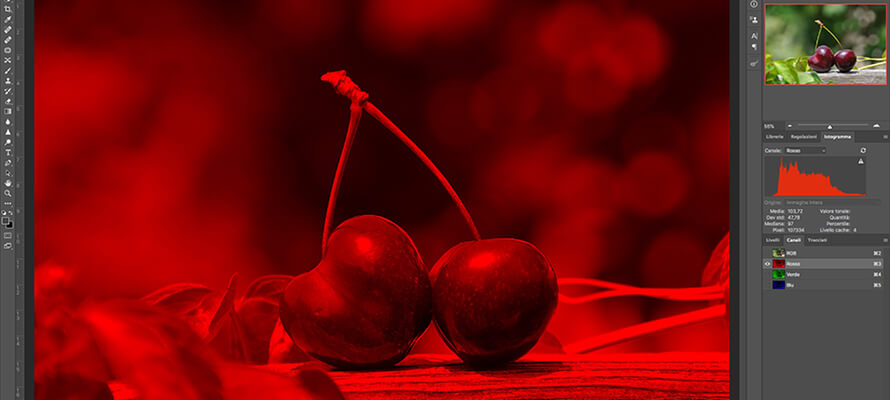 Tralasciando il metodo CMYK riservato alla riproduzione dei colori a stampa, con l’RGB ci siamo abituati a misurare un pixel secondo le tre coordinate Red, Green e Blue, che possono avere valori cromatici che vanno da un minimo di 0 a un massimo di 255, dal bianco al nero, e a ottenere tutti i 16.777.216 di tinte intermedie, sommando tra loro le diverse proporzioni. Eppure questa rappresentazione non basta, perché entrano in gioco gli spazi colore disponibili per l’RGB che hanno diversi gamut, ovvero hanno diverse gamme di colori riproducibili. È presto dimostrato: campionando un punto qualsiasi dell’immagine sopra delle ciliegie in RGB si ottengono diversi colori a seconda dello spazio colore applicato, sRGB o l’AdobeRGB: stessi valori, colori visibilmente diversi. E allora la ciliegia è sì rossa, ma quale rosso?
