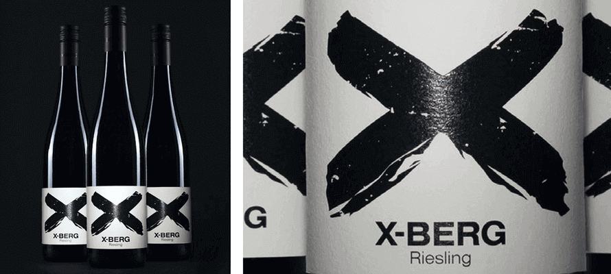 Il brief per questo progetto si è concentrato sul compito di creare dal nulla una “griffe” indipendente per il vino denominata X-Berg. Ian Rooney spiega: “Abbiamo considerato la narrazione in due modi: da un lato X-Berg è l’abbreviazione di Kreuzberg (derivato dal significato di Kreuz: “croce”), il famoso borgo di Berlino pesantemente segnato da graffiti e dalla cultura “underground”; dall’altro il significato di Berg (“montagna”) si prestava alla possibilità di essere usato come un potente riferimento visivo”.