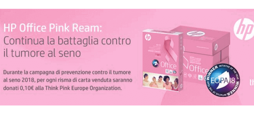 HP Office Pink Ream sarà disponibile per tutto il mese di ottobre (che è il Mese per la consapevolezza del cancro al seno in tutto il mondo). International Paper ha nuovamente impegnato un contributo minimo di € 100.000. Dell'importo totale raccolto, l'80% sarà devoluto alle associazioni locali e il 20% sarà investito in programmi paneuropei, tutto attraverso Think Pink Europe. Ad esempio, nel 2017 si sono tenuti corsi di consapevolezza del cancro per oltre 2.000 studenti delle scuole superiori in Italia. Progetti simili in altri paesi europei sono previsti per il 2018. Un altro progetto, il Think Pink Europe Award Fund, stimola la collaborazione e lo sviluppo più rapido di nuovi metodi per combattere il cancro al seno. Nella sua lotta contro la malattia, International Paper Europe, Medio Oriente e Africa (EMEA) sta seguendo la guida della sua organizzazione madre negli Stati Uniti. Dal lancio di HP Office Pink Ream nel 2007, International Paper ha donato oltre 700.000 dollari alla ricerca sul cancro al seno.