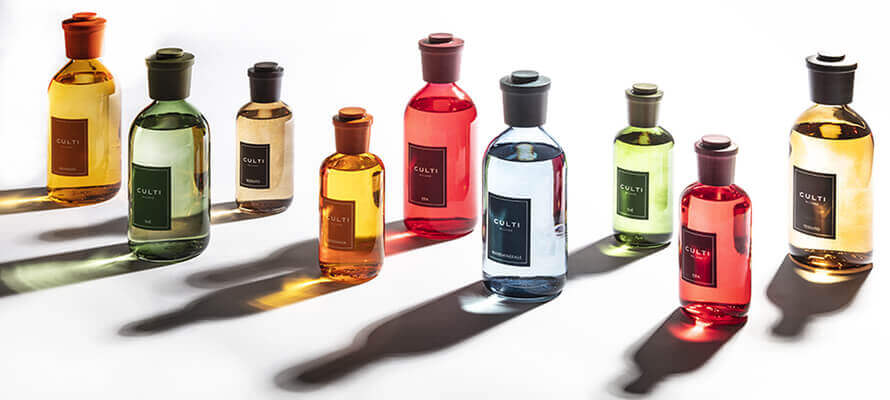 Le materie prime sono quelle della persona e dell’ambiente che abita: il profumo e i tessuti che si indossano, il legno che arreda. Dall’importanza del legno sono nati i midollini da inserire nella bottiglia per diffondere le fragranze: è un’idea di CULTI che è stata poi adottata da tutti. Oggi è diventata un’abitudine, ha trasformato il gesto del profumare gli ambienti in esperienza. Per CULTI ho scelto materiali innovativi ma soprattutto funzionali, che non miravano solo all’effetto wow: nel 1988 non c’era, come oggi, una filiera di partner a supportare il progetto, le bottiglie venivano sabbiate a mano, le etichette di tessuto venivano tagliate e applicate una alla volta. La mia prospettiva era quella dell’alto artigianato in grado di mettere insieme aziende diverse: quando si studia un prodotto si deve fare sistema, non affidarsi al caso ma creare qualcosa che abbia una visione lungimirante.
