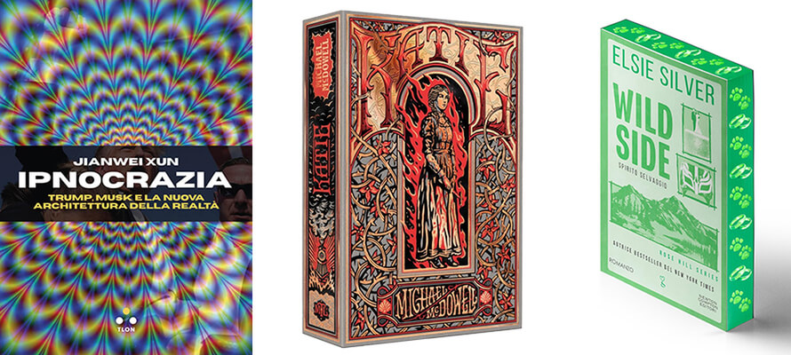 In mezzo, tra l’estetica esclusiva di massa e i recuperi artigianali, ci sono i medi editori che adottano un linguaggio visivo che unisce estetica e funzionalità. Le copertine seguono le tendenze del design grafico più attuali, come il minimalismo dinamico, che unisce la semplicità del design essenziale con elementi fluidi, asimmetrie e contrasti visivi per creare composizioni pulite ma visivamente vive e coinvolgenti, i gradienti cromatici audaci, come in “Ipnocrazia” di Jianwei Xun (Tlon), tipografia 3D e dark mode per aumentare l’impatto visivo sia in libreria sia online. Per illustrazioni e pattern, invece, si prediligono curve irregolari, linee fluide e strutture ispirate alla natura come in “Katie” di Michael McDowell (Neri Pozza) o “Godkiller” di Hannah Kaner (Mondadori). Non si disdegna l’uso dell’AI e non si hanno falsi pudori a che si capisca che si è usata l’intelligenza artificiale come in “Il potere dei luoghi” di Marco Ardizzi (Egea). In termini di legatura e materiali, si ottimizza con l’uso di copertine rigide senza sovraccoperta o brossure con alette, carte certificate FSC e finiture ecosostenibili, ma si personalizza e si nobilita anche grazie alle possibilità offerte dalla stampa digitale. Il risultato è un prodotto editoriale curato, riconoscibile e coerente con le nuove abitudini di fruizione visiva, che strizza l’occhio ai grandi, come con “Sporca estate” di Nicolò Zancan per Capricorno.