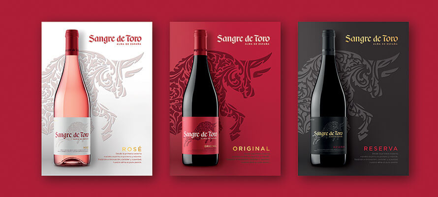 Lo studio della Cantina, della sua storia, della sua iconografia più identitaria e caratterizzante, unito all’osservazione dei competitor, ha portato come primo passo alla cristallizzazione del posizionamento di marca in una tagline – Alma de España – capace di restituirne l’essenza in particolar modo sui mercati esteri. La progettazione dell’identità di marca parte dall’icona centrale del toro e dal brand name che lo richiama. Passato da un ruolo istituzionale a uno protagonista, il toro, completamente ridisegnato, diventa un portatore di elementi culturali e naturali, vicini alla descrizione organolettica del prodotto, guidando la navigazione attraverso le referenze e risultando al contempo fiero e sofisticato interprete della passione e della potente verve comunicativa di matrice iberica. Visivamente il toro si integra elegantemente con il logotipo, anch’esso reso più distintivo e contemporaneo al fine di generare un blocco marca di forte impatto visivo. I colori sono l’altro strumento, rafforzato e rinnovato: l’Original, il capostipite, ritrova nel rosso un connotato identitario e passionale, a cui il nero tono su tono fa da contraltare per il Reserva, mentre una ricca palette declina tutte le altre referenze in modo chiaro e coerente con la loro proposition; il tutto a vantaggio di una architettura dell’offerta fresca e rinnovata oltre che di immediata decodifica.