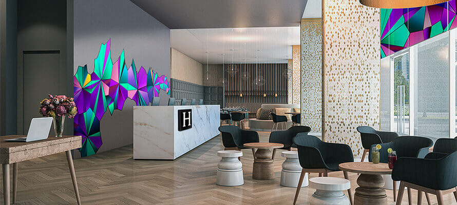 «I grand hotel sono sempre stati idee sociali, specchi impeccabili della società cui offrono i loro servizi» scriveva Joan Didion. Poco importa che si tratti di un albergo di lusso, un bed&breakfast o un ostello. La prima impressione che una struttura ricettiva suscita nel visitatore è fondamentale e può determinare la decisione di soggiornare o meno al suo interno. Per avere successo, occorre mostrarsi impeccabili, perché le persone non scelgono più affidandosi ai siti ufficiali, ma guardano i commenti e le foto scattate dai clienti che li hanno preceduti. L’utilizzo di piattaforme come Tripadvisor, l’abitudine di documentare sui social ogni istante delle proprie giornate (soprattutto quando si è in vacanza) hanno reso indispensabile avere spazi curati, originali, coerenti col proprio target. Molte strutture hanno cominciato ad affidarsi a progettisti e designer che sappiano individuare tendenze, materiali e mercato di riferimento, proponendo progetti in linea con il loro budget e la brand identity. La tecnologia digitale ha permesso di realizzare progetti esclusivi a costi sostenibili anche per realtà medio-piccole. La possibilità di stampare su ogni tipo di materiale e superficie contribuisce a trasformare gli ambienti dell’hôtellerie in luoghi unici, che assomigliano a vere e proprie opere d’arte. Quello dell’ospitalità è sicuramente uno dei comparti che ha risentito maggiormente delle chiusure imposte dalla pandemia. Facendo tesoro di questa esperienza, i professionisti del settore stanno provando a ridefinire spazi e allestimenti, tenendo conto delle nuove esigenze dei clienti. Che da un lato continuano a cercare il comfort e la ricercatezza che da sempre contraddistinguono l’esperienza in hotel; dall’altro vogliono vivere esperienze uniche e interattive. L’imperativo è progettare spazi in grado di esprimere personalità e, al contempo, garantire standard di sicurezza e sostenibilità sempre più elevati.