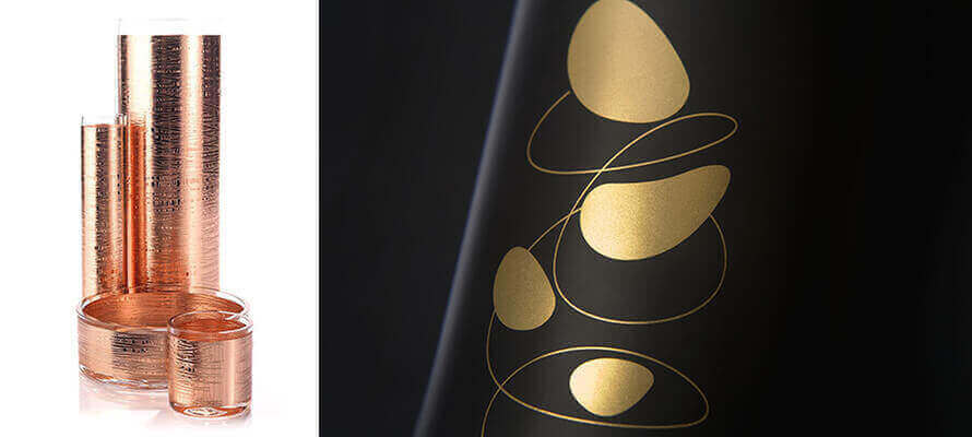 Si chiama “metallizzazione” il procedimento tradizionale, possibile solamente con l’alluminio****. Definiamo invece “sputtering” il trasferimento di metallo (alluminio, oro, platino, argento, cromo, acciaio…) sul nostro contenitore. Lo sputtering è un procedimento più innovativo, costoso e versatile rispetto alla metallizzazione. Permette di controllare lo spessore dello strato di metallo depositato, e quindi la coprenza e la stessa resistenza all’abrasione.