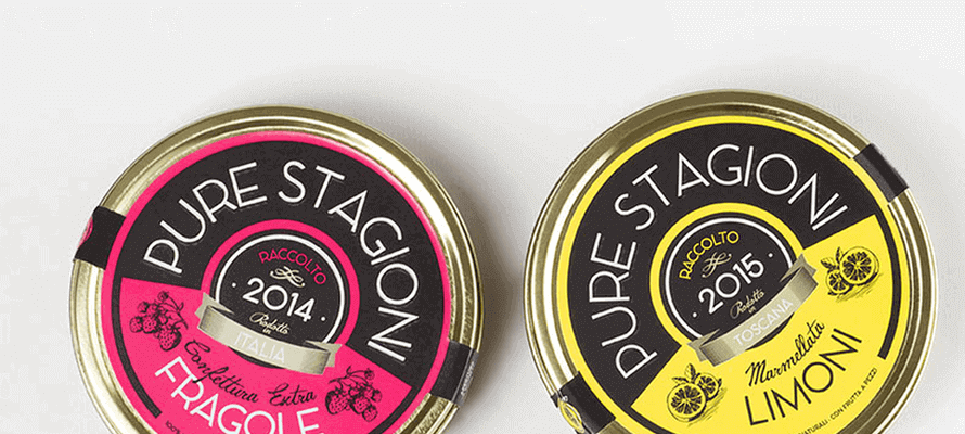 Marmellate e confetture interpretate come veri e propri “caviali di frutta genuina”. Un prodotto dall’immagine accattivante che sintetizza e rende tangibili i valori di lusso e qualità. Un insieme di soluzioni visive di design permettono a Pure stagioni di raggiungere questo obiettivo: l’uso di due caratteri tipografici, cocomat e jamscript, sviluppati ad hoc dalla nostra font foundry Zetafonts; l’armoniosa unione tra un’immagine iconografica, evocazioni del territorio e di prodotto, una tipografia retrò di ispirazione anni ’30 e l’uso dei colori per identificare i diversi gusti. Tutto delicatamente inserito in un colore di fondo nero, tipico dei prodotti esclusivi.