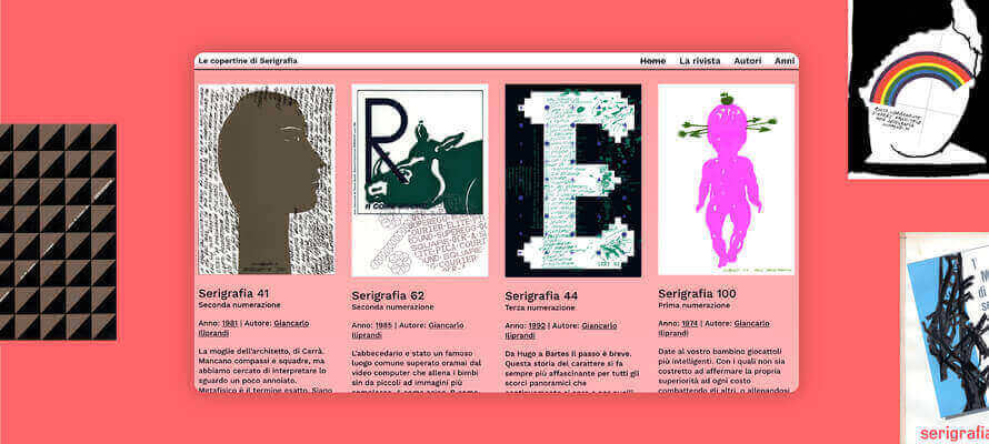 Con questo imperativo che non si poteva ignorare Ruggero Zuliani, editore della testata, con Mattia Reali e Riccardo Volpato dello studio MOST, hanno dato vita al progetto “Le copertine di Serigrafia”, un archivio digitale consultabile all’indirizzo web copertineserigrafia.it che raccoglie e rende possibile la libera consultazione delle copertine della rivista pubblicate tra il 1956 e il 1992.