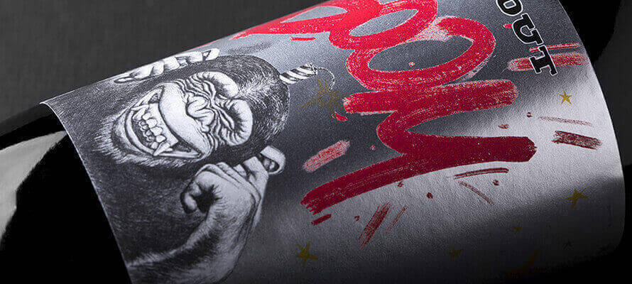 Questo accattivante design vuole mantenere l’equilibrio con le origini artigianali dando al contempo l’idea di una Molotov, una guerra di sapori con un’etichetta pericolosa sul collo e una ceralacca rossa come cappuccio per proteggere la “miccia”. Un gioco di ironia tra umore festoso e situazioni esplosive.