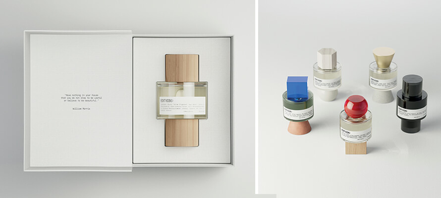 Lavernia & Cienfuegos (Spagna) hanno creato EDIT (036) che combina tecniche industriali e processi artigianali in un’unica bottiglia personalizzabile. Il design incorpora due elementi progettati con rigorosi standard di sostenibilità: un pezzo di vetro personalizzato disponibile in cinque finiture e un altro pezzo che funge da tappo e base della bottiglia. Quest’ultimo è disponibile in sei forme, dando vita a trentasei potenziali combinazioni se abbinato a sei geometrie di connettori. Ciascuna opzione è proposta in tre materiali, ciascuno con tre finiture, consentendo agli utenti di personalizzare le proprie bottiglie. In totale ci sono 40.500 possibili combinazioni tra cui scegliere. La bottiglia presenta un’etichetta che riporta le informazioni sul profumo, confezionata in una scatola robusta e foderata sigillata con un’etichetta personalizzabile. Gli utenti possono personalizzare i componenti attraverso un sito web, visualizzando e scegliendo varie caratteristiche per ciascun elemento.