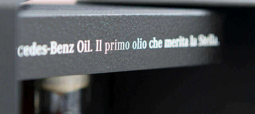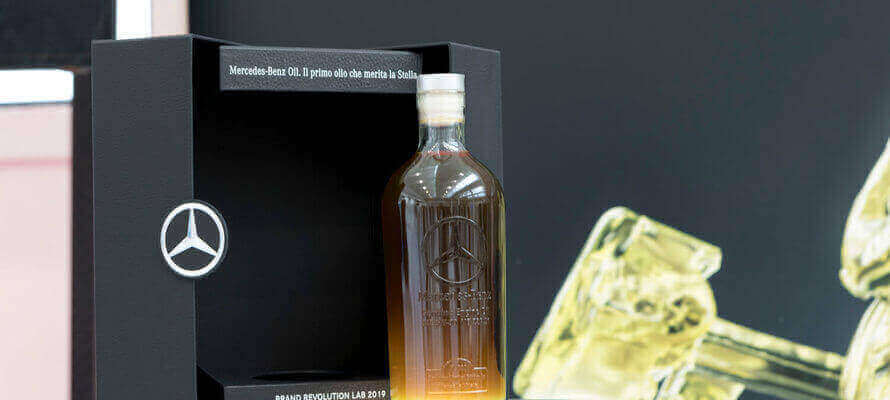 O-I ha realizzato le bottiglie che custodiscono il Mercedes-Benz Oil con l’innovativa tecnologia di stampa digitale su vetro O-I : Expressions nella sua versione premium, chiamata Relief. O-I : Expressions è l’innovazione sviluppata pensando a tutti i designer e i brand che desiderano distinguersi grazie alle possibilità di personalizzazione estrema e alla realizzazione di effetti tattili in grado di innescare una coinvolgimento multisensoriale. La tecnologia, oltre a offrire una gamma di possibilità di design e colore, destinate a progetti customizzati, speciali e limited edition, impiega inchiostri organici che non inficiano la riciclabilità del vetro.