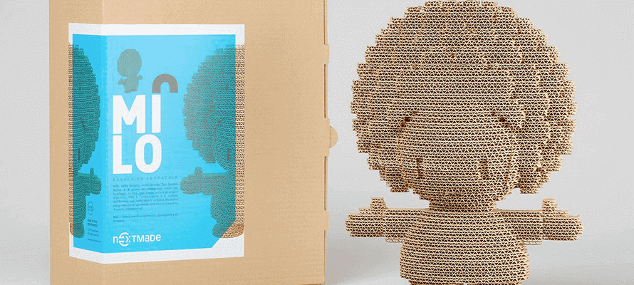 Milo, della famiglia Des Enfants World, è il primo dei personaggi creati per NextMade (in cartone certificato assemblato a mano in Italia)