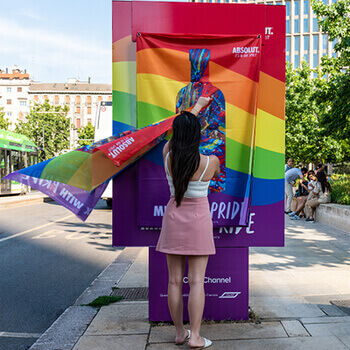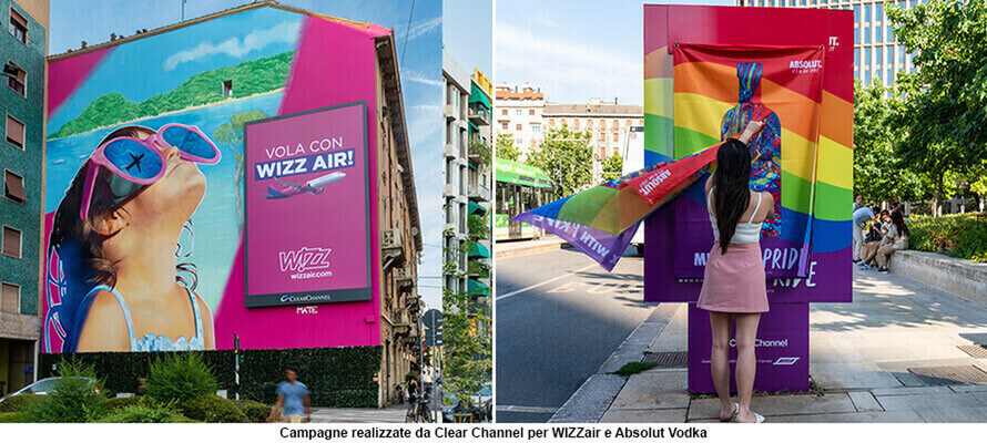 La pandemia ha accelerato un processo di digitalizzazione già avviato che rende possibile una comunicazione sempre più personalizzata e in tempo reale. «I brand si aspettano la possibilità di programmazioni versatili e last minute, perciò diamo molta importanza alla misurazione sia in fase propedeutica alla programmazione che a fine campagne» racconta Eszter Sallai, Managing Director della Clear Channel, media company leader nel settore OOH. «L’espansione del digitale non ha scalzato il tradizionale, che riveste ancora un ruolo importante. Si tratta di due declinazioni complementari, che si possono combinare per raggiungere obiettivi diversificati di comunicazione». Il formato classico si presta perfettamente a personalizzazioni creative che catturano lo sguardo, mentre il digitale sfrutta la potenza della diffusione e della versatilità. «Il mural advertising è un esempio di comunicazione OOH che punta alla spettacolarità, trasformando una campagna in qualcosa di notiziabile e virale» prosegue Sallai. «Impossibile non notarli, le pareti dei condomìni si trasformano in veri e propri punti di interesse all’interno del quartiere, vengono immortalati e condivisi sui social con estrema naturalezza. Per noi non si tratta di una semplice riproduzione di una campagna classica, ma di una vera e propria opera d’arte. Per questo preferiamo che gli street artist coinvolti mantengano un livello di autonomia sulle scelte stilistiche e di soggetto pur garantendo uno stretto legame col brand che ha commissionato l’opera». Chi bazzica Milano si sarà imbattuto di recente nei due murales commissionati dalla compagnia aerea WIZZ Air, con il coinvolgimento dello street artist Mate o degli impianti che Absolut Vodka ha voluto personalizzare in occasione del Pride, con i colori iconici della manifestazione.
