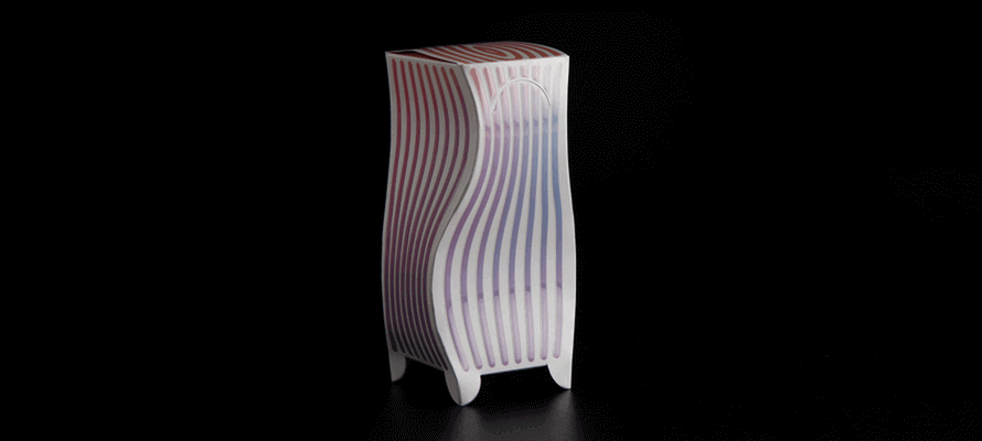 Troviamo così una busta classica che diviene incontro dei sensi, per catturare l’occhio e restituire un’intensa esperienza tattile; la multisensorialità è il fino conduttore che permea l’intero progetto, dallo scrigno esterno alla box nascosta al suo interno. Qui sfumature delicate e oniriche aprono la strada alla creatività il cui unico limite è l’immaginazione. Il progetto usa cartoncini patinati, in pura cellulosa, che si sono piegati alla volontà della cartotecnica nel realizzare un packaging stravagante ma pur sempre gentile. Ogni rifinitura contrastante tra le linee squadrate della busta e le curve morbide del portamatite viene messa in risalto attraverso l’utilizzo del 3D HiLux con il Cast&Cure, una delle nobilitazioni più in voga al momento grazie ai suoi effetti olografici. La bellezza dell’inaspettato rende l’apertura della pencil box ogni volta diversa agli occhi di chi la guarda. Come in uno scrigno prezioso, o un fiore che sboccia, l’inusuale è il segreto.