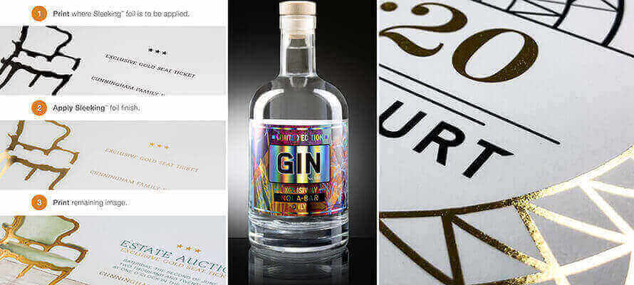 Esiste anche un’altra tecnica che sfrutta a pieno la stampa digitale e che consiste nel trasferire su toner un film direttamente su fogli stampati in digitale: lo sleeking. In questo caso non si tratta propriamente di una nobilitazione digitale, ma di una lavorazione analogica integrata con la stampa digitale. Lo sleeking si presenta come un film sul quale è spalmato un polimero che una volta applicato appare lucido come una lacca o opaco, con finitura orografica, o metallizzato. Il particolare materiale che compone il film è spalmato su un liner trasparente, che viene rimosso una volta terminato il processo. Lo sleeking si combina chimicamente con il toner utilizzato dalle stampanti digitali e il contatto con i rulli caldi permette di trasferire la nobilitazione sulle porzioni di foglio stampate, meglio se in nero per i foil colorati: sulle aree prive di toner, non si avrà alcun effetto e il film rimarrà depositato sul liner. Oltre all’applicazione a spot, questo processo permette di ottenere risultati molto interessanti sfruttando un doppio passaggio di stampa: per esempio, si stampa una parte dell’immagine e la si plastifica, il foglio si rimette in macchina per la stampa della parte restante dell’immagine e l’applicazione dello sleeking. Ma è possibile anche la sovrastampa in quadricromia del foil metallico con un processo simile al cold foil: si stampa prima la parte da nobilitare con lo sleeking, si applica il foil e successivamente si torna in macchina per stampare il resto della grafica. Parlando di colori ed effetti, le possibilità sono decisamente vaste. Magdata, per esempio, propone due gamme di prodotti. La Digital Foiler che permette di trasferire su toner con riserva film bianchi o metallizzati nei colori oro, argento, rosso, blu, verde, rosa, viola, bronzo e persino a effetto ologramma e cangiante, oppure di applicare un film trasparente per lucidare a registro senza passare da laminazione tradizionale o verniciatura UV. I foil sono adatti a fogli stampati su macchine digitali Konica Minolta, Xerox, Indigo e Canon. A questa si aggiunge la serie film in polipropilene dedicati specificamente alla stampa digitale per prodotti che richiedono lavorazioni come fustellatura, cordonatura e piega. Qui si va dal classico lucido o opaco a effetti velluto e soft-touch delle serie Temptation e Velour.