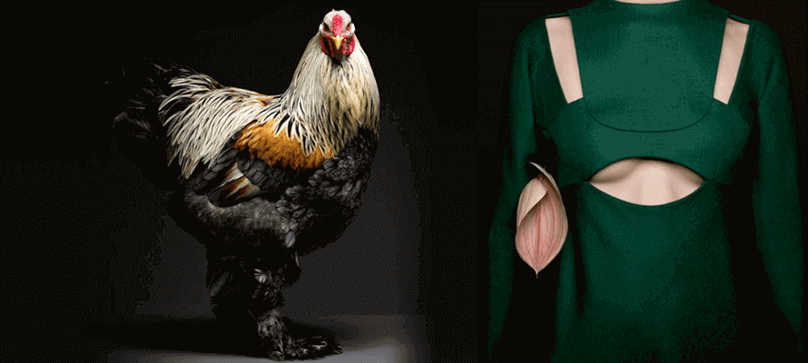 Chic-ken è un lavoro a quattro mani realizzato col fotografo Moreno Monti. Si tratta di ritratti di galline ornamentali, riprese nelle loro pose naturali, da cui traspare tutto il carattere oltre alle peculiarità estetiche. L’idea è nata dalla frequentazione di fiere avicole molto diffuse nel Nord Europa, legate alla tradizione aristocratica settecentesca di popolare i giardini di bellezza. Il libro è stato realizzato grazie a una campagna di crowdfunding che ha avuto un successo inaspettato, ed è stato stampato in offset in 3500 copie da Kappadue Arti Grafiche di Treviso. Abbiamo scelto l’offset perché ci è sembrata la tecnologia più efficace per restituire le diverse gradazioni di nero degli sfondi, che nella parte alta diventano tutt’uno con il nero delle cornici delle pagine. Per quanto riguarda le stampe da esposizione, invece, abbiamo scelto una tecnologia ibrida, la Lambda di Colorzenith: la stampa avviene da file digitale con getto d’inchiostro su carta fotografica. Il laser fissa l’immagine che poi viene sviluppata in analogico, con bagno di sviluppo e fissaggio. Rispetto all’inkjet tradizionale, che già offre una qualità altissima, la Lambda permette alla luce di entrare nel pigmento, che si stratifica e restituisce una profondità straordinaria a immagini così ricche di contrasti e dettagli.