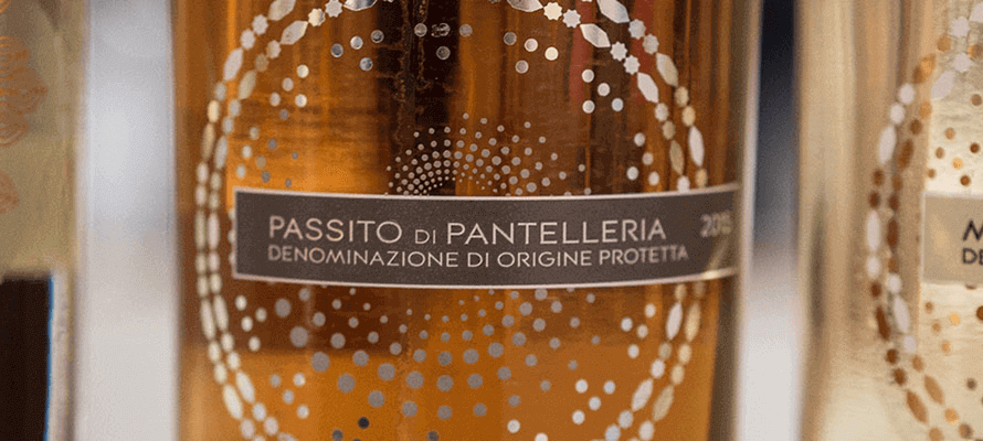 Carlo Pellegrino & C. Spa di Marsa, ha scelto l’agenzia Alias ADV, per vestire tre linee di vini dolci. L’etichetta adesiva, con applicata lamina oro e bronzo, presenta dei piccoli rilievi sulla superfice percebili al tatto. Il coordinato è composto da due bottiglie: moscato e passito, a cui si aggiunge lo zibibbo. Passito e moscato presentano il medesimo motivo grafico di tipo geometrico, nel caso del passito il motivo è rappresentato da toni chiari che ben contrastano con il colore ambrato del passito. Nel caso del moscato invece abbiamo un’inversion di tonalità e quindi un’etichetta con toni più scuri che contrastano sul colore paglierino della bottiglia.