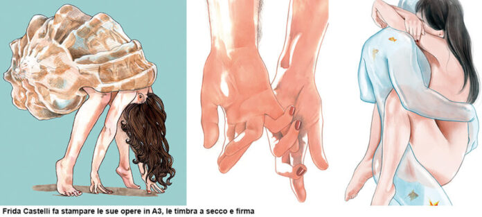 Nel caso di Frida Castelli, artista di base a Milano con un pubblico globale, il printing on demand ha fornito lo strumento per realizzare stampe d’arte che potessero raggiungere anche mercati in cui sarebbe stato complesso arrivare, come ci racconta il suo editore, il fondatore di Moorigo Studio: «Il percorso artistico di Frida è cominciato usando Instagram come una sorta di diario per immagini, un’opera di autofiction attraverso le illustrazioni. Quando ha iniziato a pubblicare, nel 2016, inizialmente ci siamo rivolti a uno stampatore della zona, ma i risultati non sono stati soddisfacenti: c’era un problema di mancata comprensione: per un’azienda abituata alle grandi tirature del corporate, un cliente che avesse bisogno di poche copie per volta ma di alta qualità e con vendite costanti nel tempo non era un interlocutore interessante. In seguito ci siamo affidati a una delle prime aziende in Italia a offrire il print-on-demand con un livello qualitativo alto a prezzi accessibili. Poter ordinare piccole tirature ci ha consentito di non dover affrontare i costi di stoccaggio, magazzino e inventario e risparmiare il 50-60% sui costi vivi. Utilizziamo i loro servizi anche per le stampe personalizzate fuori misura o su supporti diversi dalla carta, come ad esempio forex o altri materiali per il grande formato.