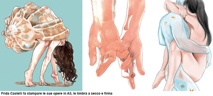 In the case of Frida Castelli, a Milan-based artist with a global audience, printing on demand provided the tool to make art prints that could also reach markets where it would have been complex to get to, as her editor, the founder of Moorigo Studio, tells us: “Frida’s artistic journey began by using Instagram as a kind of diary for images, a work of self-fiction through illustrations. When she started publishing in 2016, we initially turned to a local printer, but the results were unsatisfactory. There was a problem of lack of understanding: for a company accustomed to large corporate print runs, a client who needed a few copies at a time but of high quality and with constant sales over time was not an exciting contact. We then turned to one of the first companies in Italy to offer print-on-demand with a high level of quality at affordable prices. Being able to order short runs meant we did not have to deal with storage, warehousing and inventory costs and saved 50-60% on out-of-pocket costs. We also use their services for customised outsize printing or printing on non-paper substrates, such as forex or other large-format materials.”