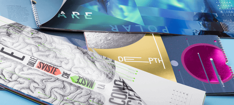A partire dalla copertina, sulla quale campeggia una gigantesca X bucata su un gradiente vittima dell’inquinamento del colore. E poi ci sono i mesi: ciascuno racconta un errore diverso, sia con applicazioni di digital art e soluzioni cartotecniche, sia attraverso la narrazione di aneddoti e incubi dello stampatore. Alcuni esempi? L’errore di pendant a marzo, quello di rasterizzazione a maggio, il foglio difettato che fa impazzire i tecnici di stampa e rischia di rovinare la gomma del cilindro, ma che per Grafical è l’occasione per creare una pagina fustellata e piegata a mano come un origami.