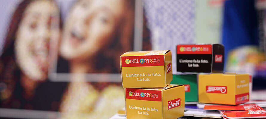 «Le potenzialità della stampa grande formato, molto efficace nella comunicazione diretta dove messaggio e stampa professionale fanno la differenza, unite alla possibilità di integrare elementi multimediali, ci hanno dato la giusta ispirazione per credere in questo progetto dove di grande c’è davvero tutto… anche le dimensioni della scatola che contiene Pixel Art 8 Take a Selfie», hanno detto Eladia Sillo e Giovanna Guglielmi, executive retail manager di Creostudios.